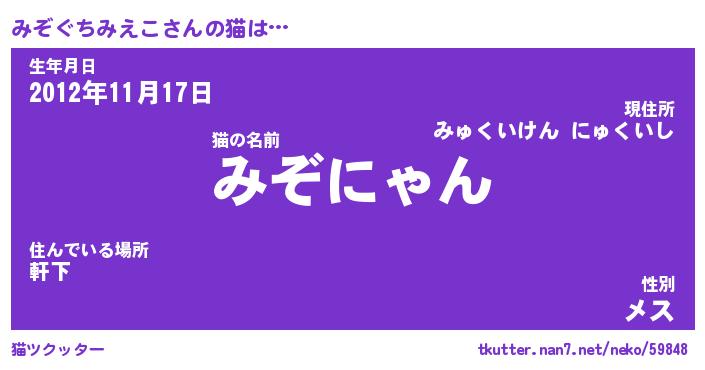 | 女子向けラノベタイトル風あだ名 | 『(仮)みぞぐちみえこのやんごとなき事情』 |