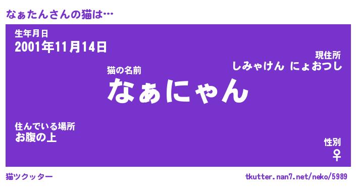 | 意味不明あだ名 | 『ペロリンなぁたん』『永久保存なぁたん』 |