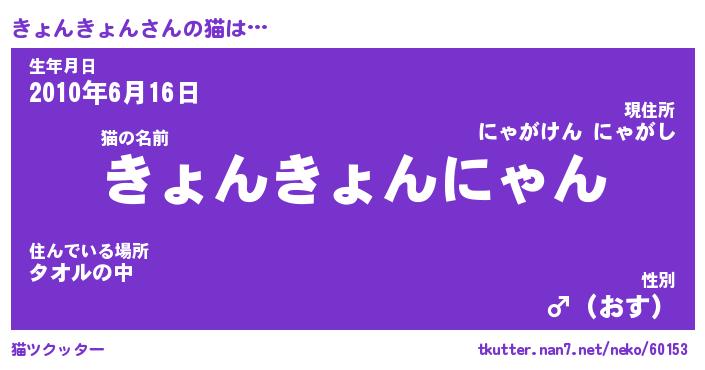 | 男性向けラノベタイトル風あだ名 | 『きょんきょんの憂鬱』 |