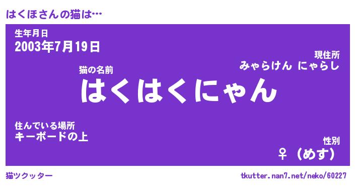 | 生年月日? …「くろねこ」 | 8月01日 10:16 |