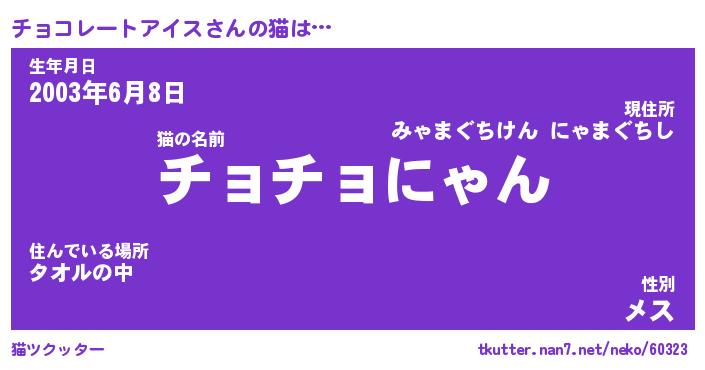 | ポケモン風あだ名 | 『チョチュウ』『チョコダネ』 |