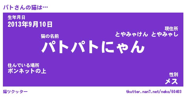 | ポケモン風あだ名 | 『パトチュウ』『パトダネ』『ヒパト』 |