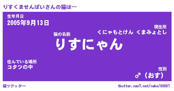 | ポケモン風あだ名 | 『リスチュウ』『リスクダネ』 |