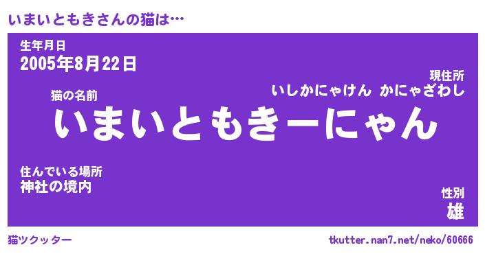 | ポケモン風あだ名 | 『イマチュウ』『イマイダネ』 |