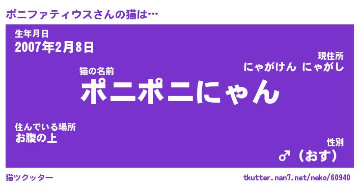 | ポケモン風あだ名 | 『ポニチュウ』『ポニフダネ』 |