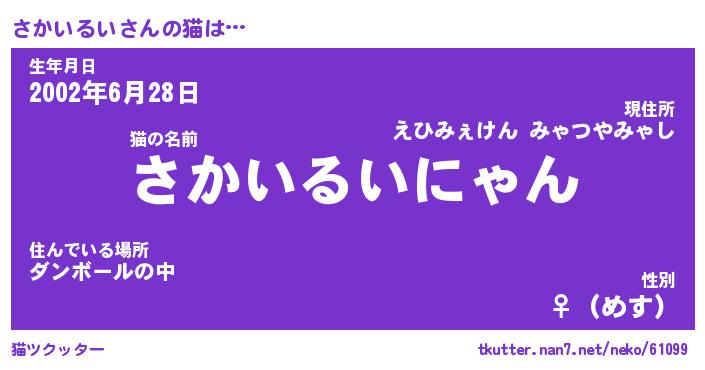 | 生年月日? …「くろねこ」 | 8月01日 10:16 |