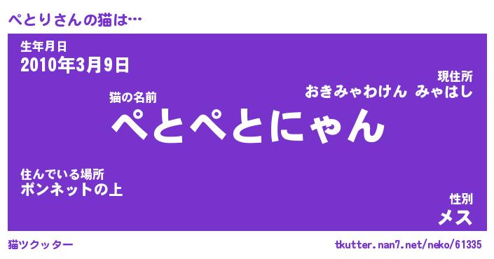 | ポケモン風あだ名 | 『ペトチュウ』『ペトリダネ』 |