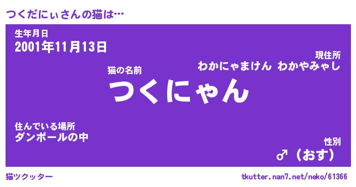 | ファンタジー風あだ名 | 『ツクフェル』『エターナルツクダニィー』 |