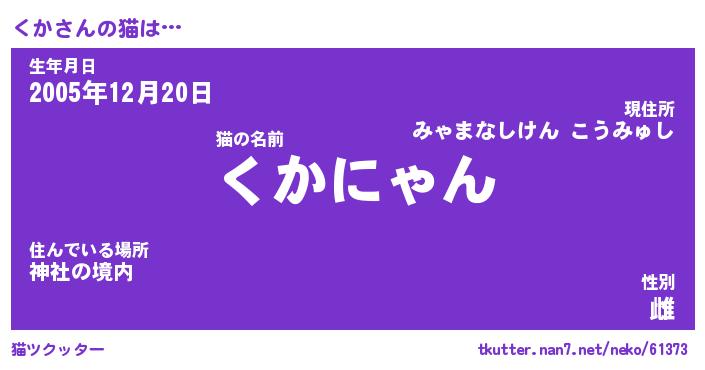 | ポケモン風あだ名 | 『クカチュウ』『クカダネ』『ヒクカ』 |