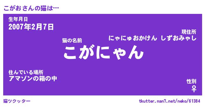 | ポケモン風あだ名 | 『コガチュウ』『コガオダネ』 |