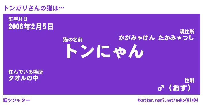 | ポケモン風あだ名 | 『トンチュウ』『トンガダネ』 |