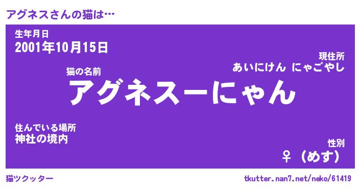 | ポケモン風あだ名 | 『アグチュウ』『アグネダネ』 |