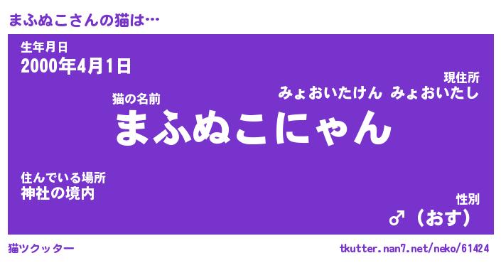 | 意味不明あだ名 | 『ペロリンまふぬこ』『永久保存まふぬこ』 |