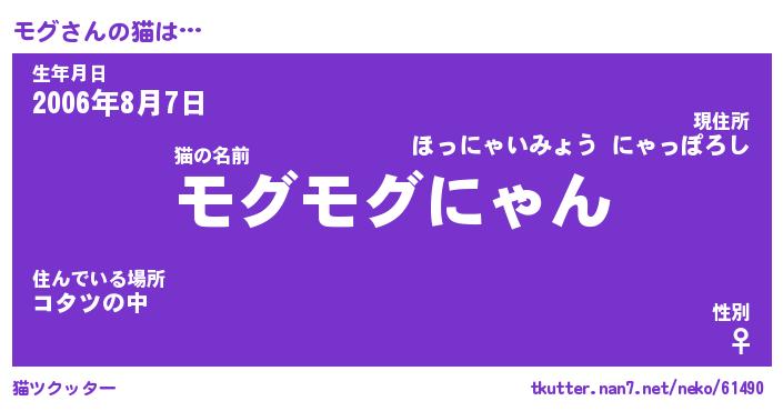 | ポケモン風あだ名 | 『モグチュウ』『モグダネ』『ヒモグ』 |