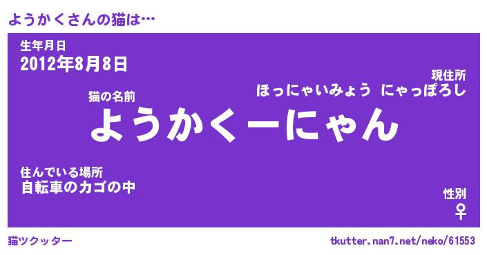 | ファンタジー風あだ名 | 『ヨウフェル』『エターナルヨウカクー』 |