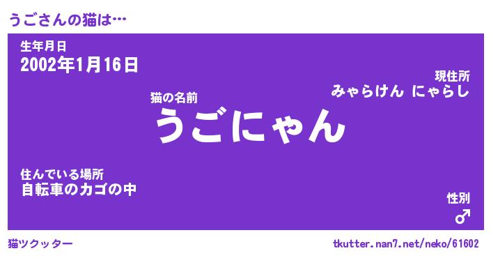 | ポケモン風あだ名 | 『ウゴチュウ』『ウゴダネ』『ヒウゴ』 |