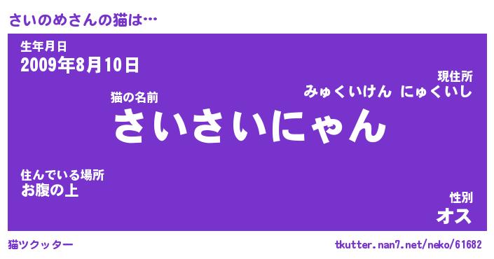 | 欧米人風あだ名 | 『マイケルさいのめ』『ウサインさいのめ』 |