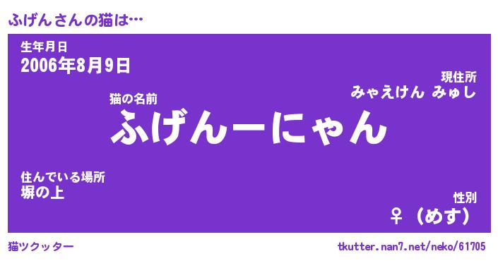 | ポケモン風あだ名 | 『フゲチュウ』『フゲンダネ』 |