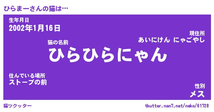 | 生年月日? …「くろねこ」 | 8月01日 10:16 |