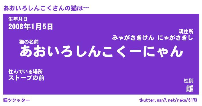 | ツイッター | あおいろしんこくさんのツイッターID『namakemono_nyan』 |