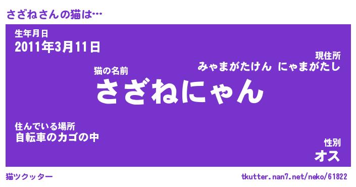 | ヘコむあだ名 | 『さざもー』『牛乳』『さざぷりん』 |
