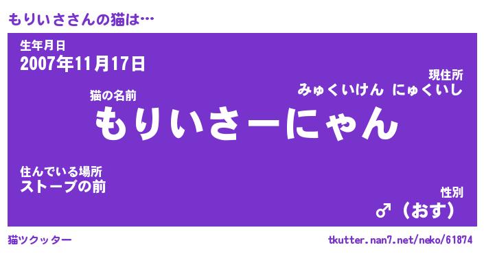 | 意味不明あだ名 | 『ペロリンもりいさ』『永久保存もりいさ』 |