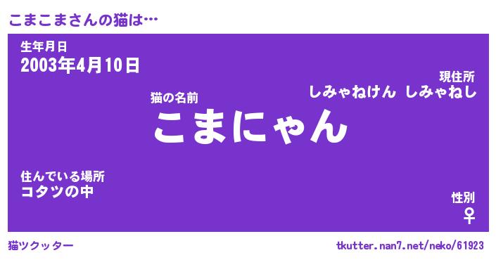 | 意味不明あだ名 | 『ペロリンこまこま』『永久保存こまこま』 |