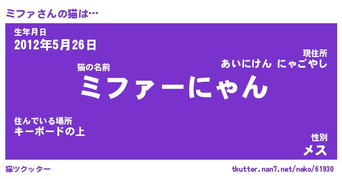 | 意味不明あだ名 | 『ペロリンミファ』『ミファフォーエバー』 |