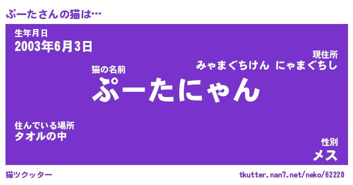 | 男性向けラノベタイトル風あだ名 | 『ぷーたの憂鬱』 |