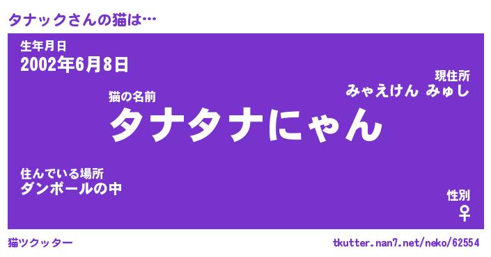 | ポケモン風あだ名 | 『タナチュウ』『タナッダネ』 |