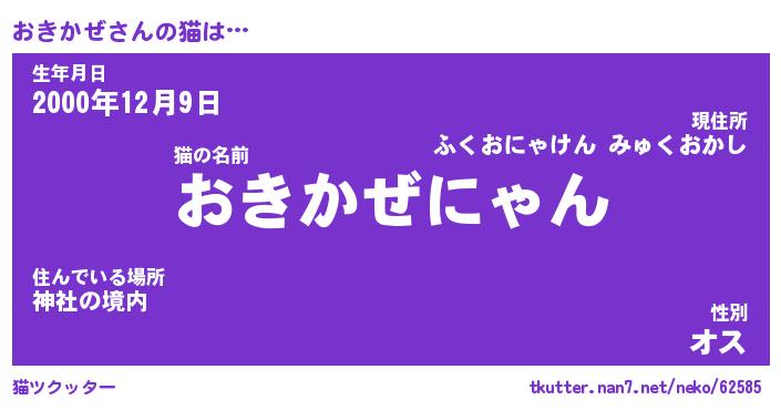 | 意味不明あだ名 | 『ペロリンおきかぜ』『永久保存おきかぜ』 |