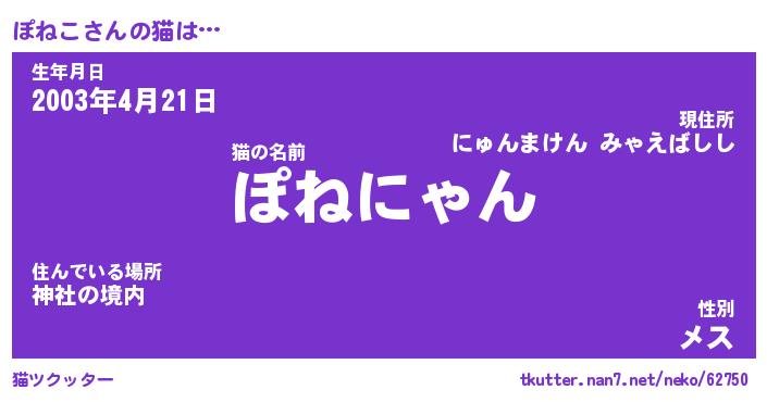 | 意味不明あだ名 | 『ペロリンぽねこ』『ぽねこフォーエバー』 |