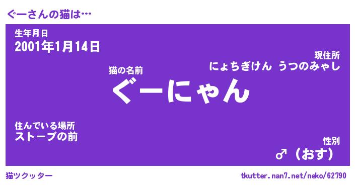 | ヘコむあだ名 | 『ぐーにゅー』『つくし』『ぐーお』 |
