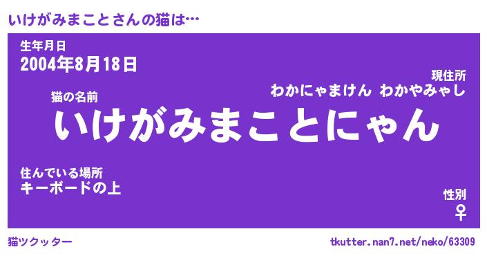 | 男性向けラノベタイトル風あだ名 | 『いけがみまことの憂鬱』 |