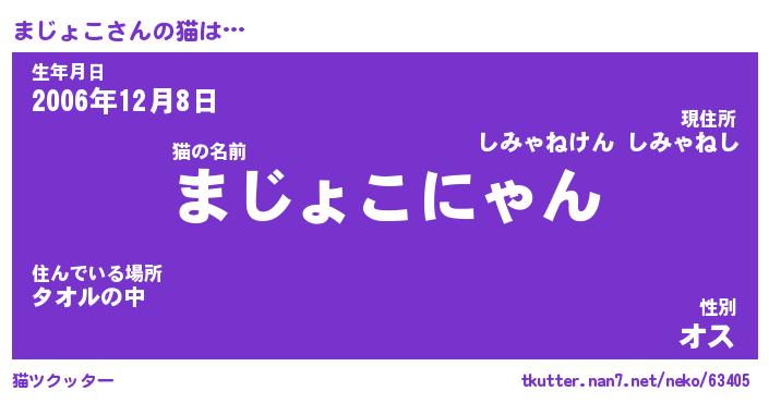 | 男性向けラノベタイトル風あだ名 | 『まじょこの憂鬱』 |