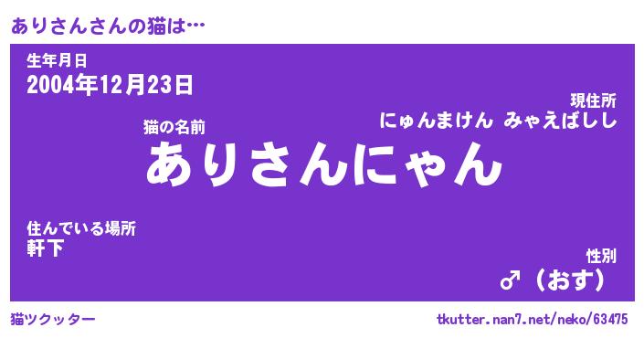 | 意味不明あだ名 | 『ペロリンありさん』『永久保存ありさん』 |