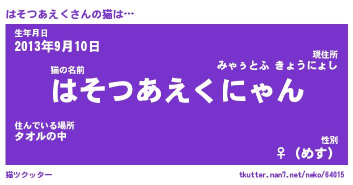 | 生年月日? …「くろねこ」 | 8月01日 10:16 |