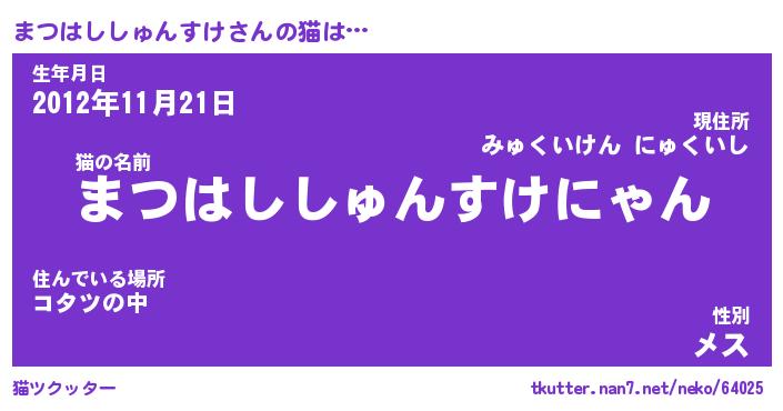 | 男性向けラノベタイトル風あだ名 | 『まつはししゅんすけの憂鬱』 |