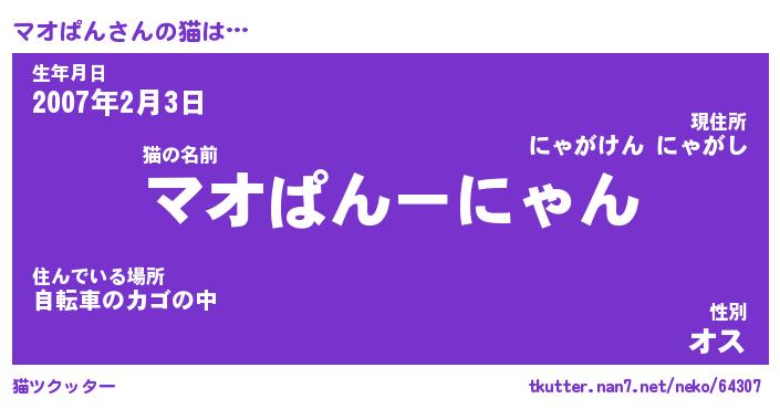 | 意味不明あだ名 | 『ペロリンマオぱん』『永久保存マオぱん』 |