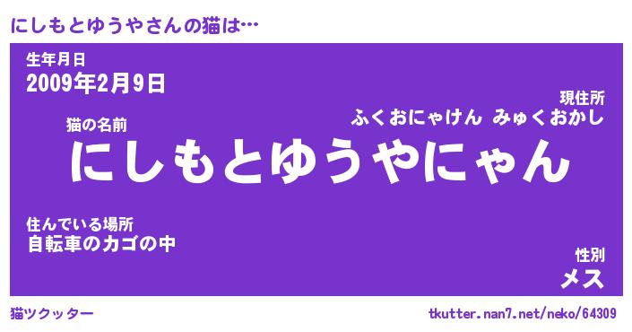 | 男性向けラノベタイトル風あだ名 | 『にしもとゆうやの憂鬱』 |