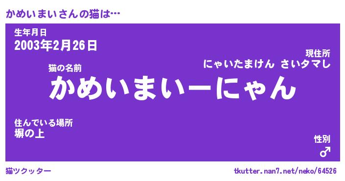 | ヒーロー風カッコイイあだ名 | 『スーパーカメイマイ』『天弓騎士カメ』 |