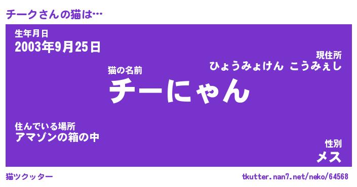 | ファンタジー風あだ名 | 『チーフェル』『エターナルチークー』 |