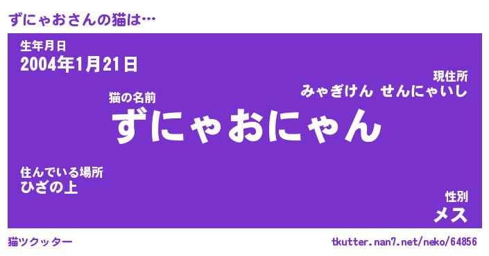 | 意味不明あだ名 | 『ペロリンずにゃお』『永久保存ずにゃお』 |