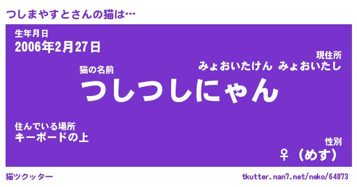 | ポケモン風あだ名 | 『ツシチュウ』『ツシマダネ』 |