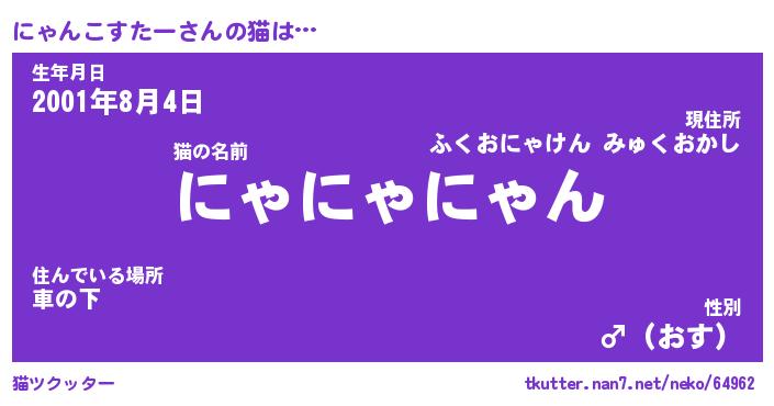 | ツイッター | にゃんこすたーさんのツイッターID『katatsumuri_star』 |