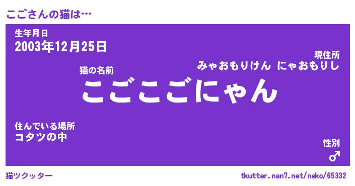 | ファンタジー風あだ名 | 『コゴフェル』『エターナルコゴー』 |
