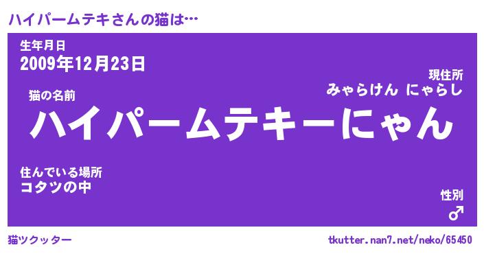 | 伝説のあだ名 | 『封印されしスナイパーハイパームテキ』 |