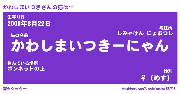| 肩書あだ名 | 『かわしまいつき御曹司』 |