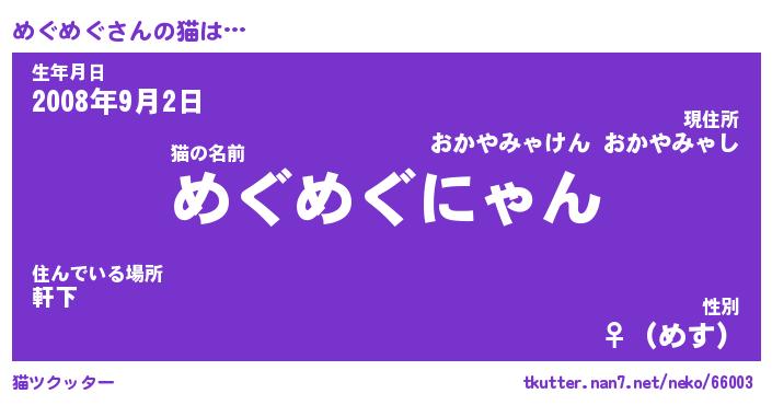 | 2回繰り返すあだ名 | 『めぐめぐ』『めめぐぐ』『なあなあ』 |