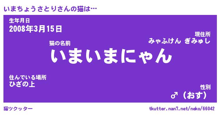 | ポケモン風あだ名 | 『イマチュウ』『イマチダネ』 |